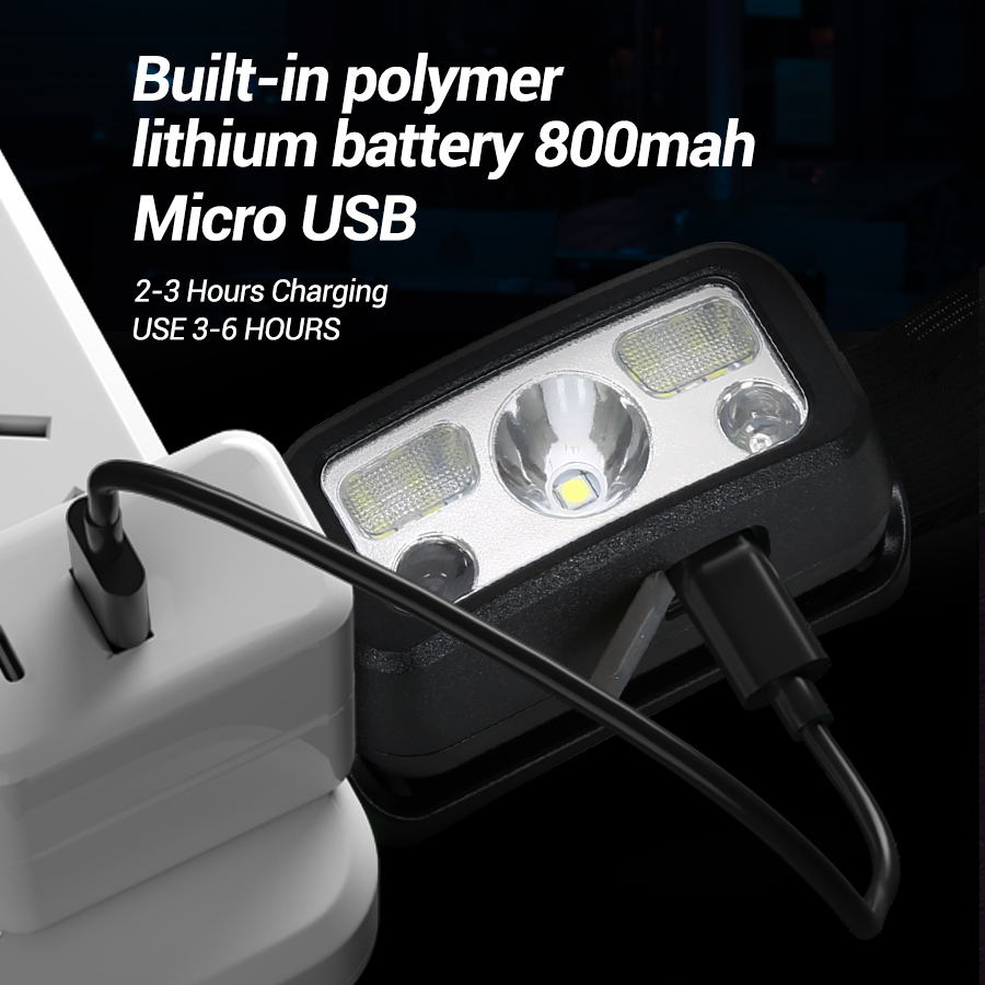 Mô tả sản phẩm Mới XPE+COB cảm ứng ánh sáng mạnh đầu đèn USB sạc ngoài trời ánh sáng ban đêm đi xe ánh sáng đầu - Có thể sạc qua usb - Đèn đội