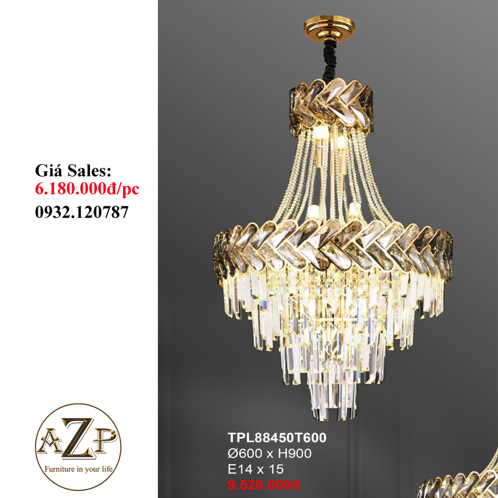 ĐÈN THẢ TRẦN PHA LÊ / ĐÈN THÔNG TẦNG TRANG TRÍ PHÒNG KHÁCH / PHÒNG NGỦ / CẦU THANG / KHÔNG GIAN SANG TRỌNG AZP-88450 phong cách đương đại, hàng nhập khẩu AZP