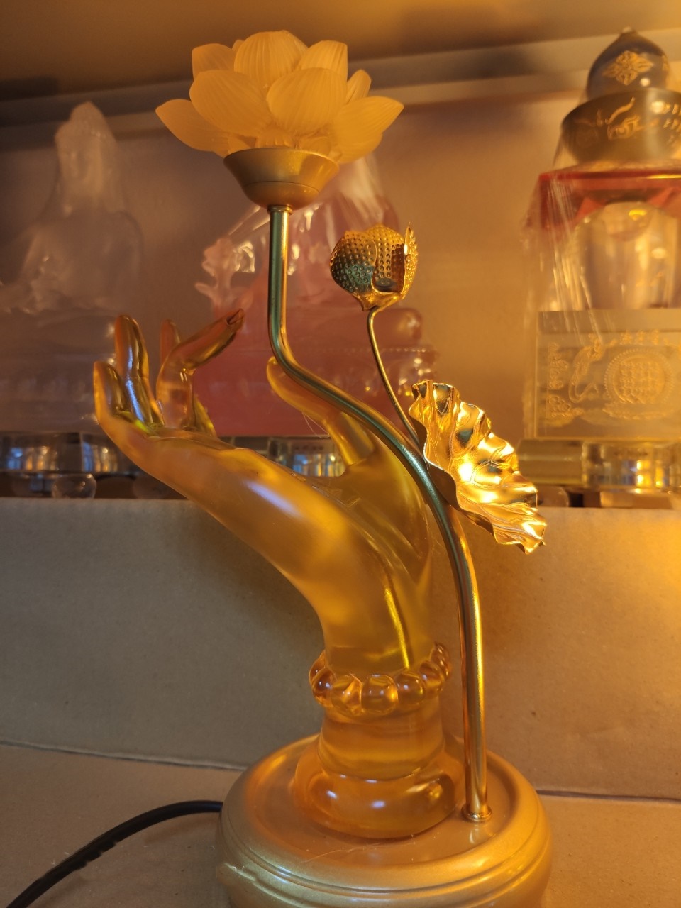Đèn thờ hoa sen lưu ly chân pha lê trang trí bàn thờ Phật, Gia Tiên #dentrangtri #dothocung #densen
