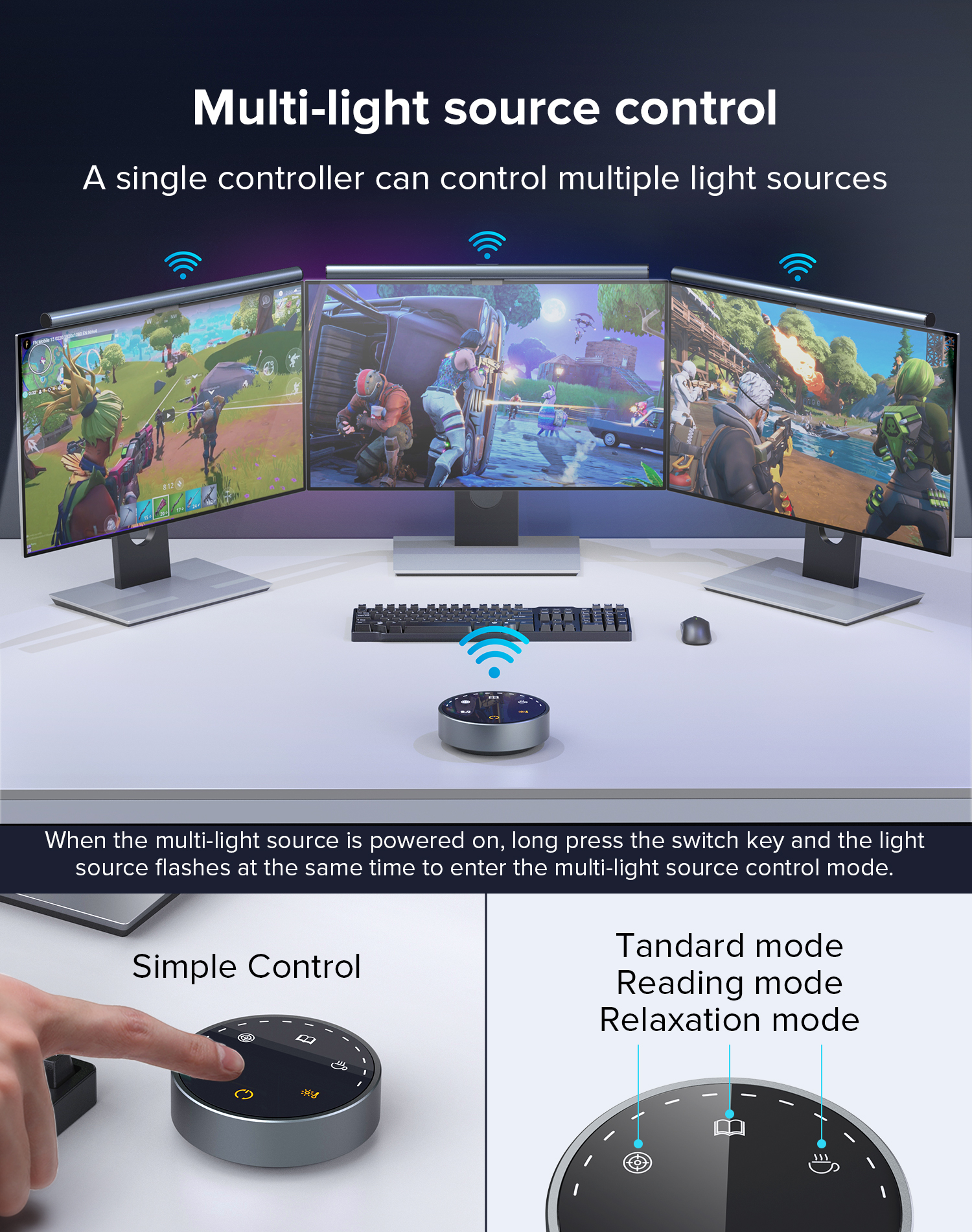 - Đóng gói: Hộp 1 sản phẩm, 1 remote, 1 cáp Usb to Type C và sách hướng dẫn sử dụng Thông tin chi tiết – Theo các nghiên cứu khoa học, làm việc trong môi trường thiếu ánh sáng không chỉ gây hại cho đôi mắt mà còn có tác động xấu đến sức khỏe cả về thể chất và tinh thần của con người. Điều này có thể gây ra cảm giác đau đầu và mệt mỏi. – Nếu bạn phải thường xuyên sử dụng máy tính (và laptop), ánh sáng môi trường sẽ ảnh hưởng rất nhiều đến sự tập trung và đặc biệt là rất hại mắt. Đèn treo màn hình máy tính, laptop bảo vệ mắt Choetech E1129 là sản phẩm không thể thiếu nếu bạn thường xuyên làm việc với máy tính mà muốn bảo vệ mắt, tăng tập trung để nâng cao hiệu quả. – Đèn treo màn hình máy tính, laptop bảo vệ mắt Choetech E1129 là một ứng cử viên sáng giá với nhiều tính năng nổi bật như: Có remote điều khiển từ xa, có núm điều khiển xoay hiện đại trên remote, kẹp từ tính chắc chắc, đặc biệt đèn Led cho dải nhiệt độ màu rộng từ 2700 – 6500K…. – Đèn treo màn hình bảo vệ mắt Choetech E1129 có tác dụng chiếu sáng phạm vi hẹp gồm màn hình và bàn làm việc mang đến không gian làm việc thoải mái cho người sử dụng đồng thời không ảnh hưởng đến mọi người xung quanh. Bên cạnh đó, đèn được thiết kế phù hợp cho cả màn hình phẳng và cong, dễ dàng lắp đặt bằng giá đỡ từ tính và đế xoay 25° – Đèn treo màn hình máy tính, laptop bảo vệ mắt Choetech E1129 có thiết kế tối giản vô cùng hiện đại, đậm chất công nghệ. Đèn có kích thước khá nhỏ gọn, không chiếm quá nhiều diện tích sử dụng trên bàn làm việc. Việc tháo lắp cũng và điều chỉnh cũng rất dễ dàng và linh hoạt. Đèn có thiết kế chiếu về phía trước không đối xứng cũng giúp giảm độ phản chiếu màn hình, chống chói, cho phép bạn sử dụng trong một thời gian dài cũng không sợ ảnh hưởng tới mắt. – Bạn có thể dễ dàng điều chỉnh nhiệt độ màu và độ sáng của đèn thông qua nút cảm ứng trên remote thông minh sao cho phù hợp với nhu cầu sử dụng. Điều khiển từ xa sử dụng công nghệ kết nối không dây 2.4HZ đề điều chỉnh nhiệt độ màu và độ sáng theo ý muốn. Ngoài ra, bộ điều khiển có thể điều khiển cùng lúc 3 đèn cùng lúc, rất tiện lợi nếu bạn sử dụng cùng lúc 3 màn hình. – Đèn sẽ có 3 nhiệt độ màu: ánh sáng trắng, ánh sáng ấm và ánh sáng hỗn hợp, đáp ứng mọi nhu cầu sử dụng của người dùng. Để đảm bảo chất lượng tốt nhất, Đèn treo màn hình máy tính, laptop bảo vệ mắt Choetech E1129 được làm từ các hạt đèn LED chất lượng cao, giảm thiểu nguy cơ ánh sáng xanh, hạn chế tình trạng đèn nhấp nháy, mang đến ánh sáng ổn định và an toàn cho mắt người sử dụng. Cách sử dụng remote:
