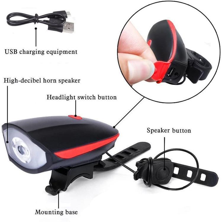 Đèn Xe Đạp Có Còi Chống Nước, Sạc USB