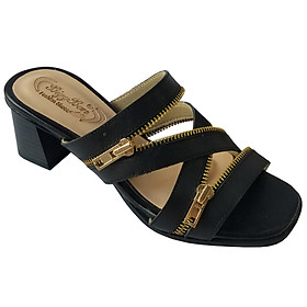- Dép nữ cao gót quai ngang một bản TRường Hải màu đen gót vuông 8cm da mềm DN139 thiết kế với kiểu dáng ôm chân, thon gọn, thoải mái di chuyển mà không lo