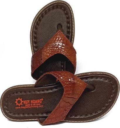 • Tên sản phẩm: Dép da cá sấu Huy Hoàng kiểu kẹp màu nâu đỏ HT7236
