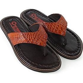 • Tên sản phẩm: Dép da cá sấu Huy Hoàng kiểu kẹp màu vàng bò HT7235
