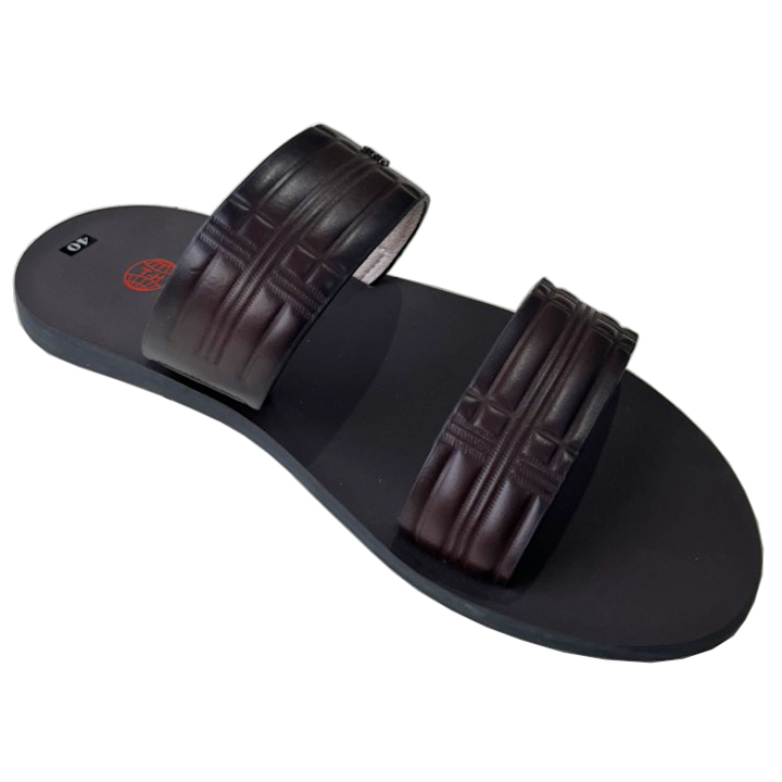 Dép Nam Quai Ngang Da Bò Bản Lớn Màu Nâu Trường Hải DN046