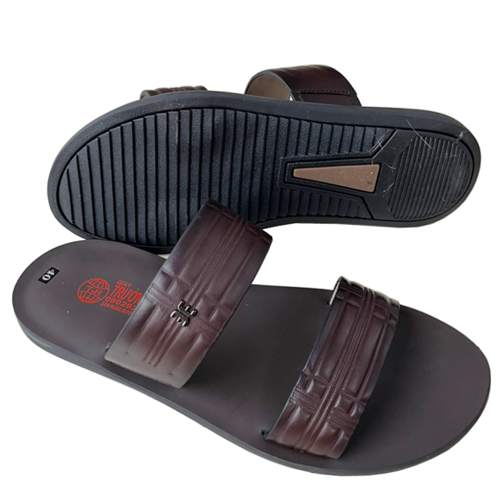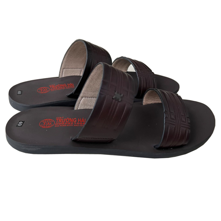 Dép quai ngang nam TRường Hải hai dây da bò màu nâu