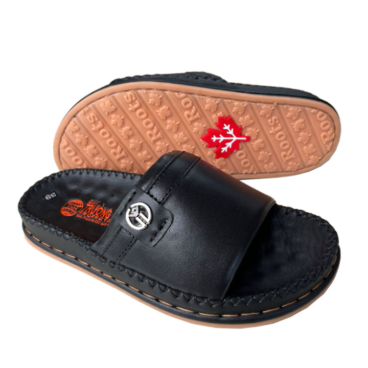 Dép Da Nam - Lịch Lãm & Thoải Mái Mỗi Ngày - Chất liệu cao cấp: Sử dụng da tổng hợp chất lượng, mềm mại, bền bỉ theo thời gian, mang lại cảm giác êm ái và thoáng khí cho bàn chân. - Thiết kế sang trọng: Tông màu đen lịch lãm, kết hợp với đường chỉ may tinh tế và logo kim loại nổi bật – tôn lên vẻ nam tính, trưởng thành. - Đế chống trượt: Đế EVA siêu nhẹ, độ đàn hồi tốt, kết hợp vân đế tăng độ ma sát – an toàn khi di chuyển trên nhiều bề mặt. - Form ôm chân: Thiết kế bản quai ngang rộng, ôm gọn bàn chân nhưng không gây bí bách, dễ xỏ vào – thích hợp cho người trung niên và người lớn tuổi. - Ứng dụng đa năng: Phù hợp sử dụng trong nhà, đi dạo phố, đến văn phòng hoặc các dịp gặp gỡ thân mật. Lựa chọn tuyệt vời cho quý ông yêu thích sự thoải mái, đơn giản nhưng vẫn giữ được nét tinh tế trong từng bước chân.