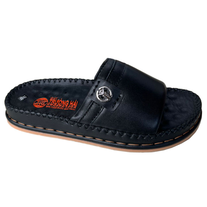 Dép nam quai ngang một bản cao 3.5cm chính hãng Trường Hải da bò thật màu đen QN178