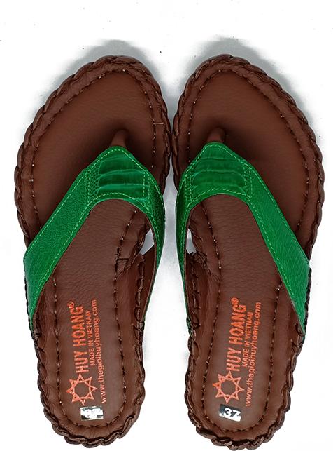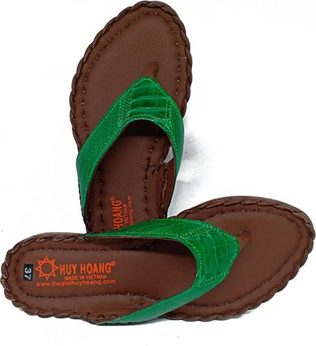 ✨Dép nữ Huy Hoàng da đà điểu màu xanh rêu HT7409