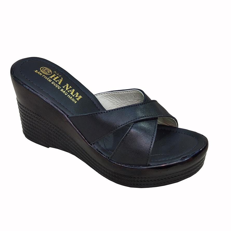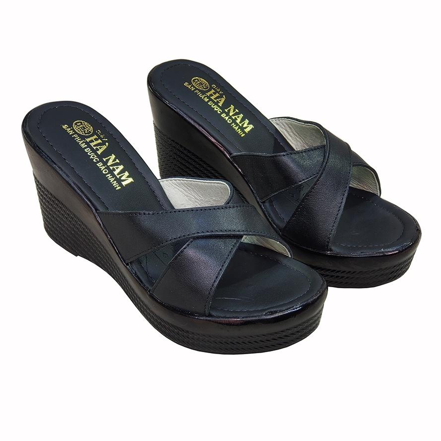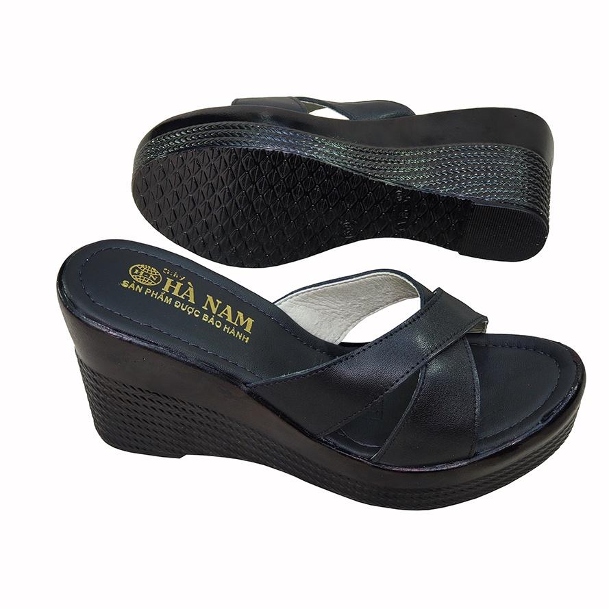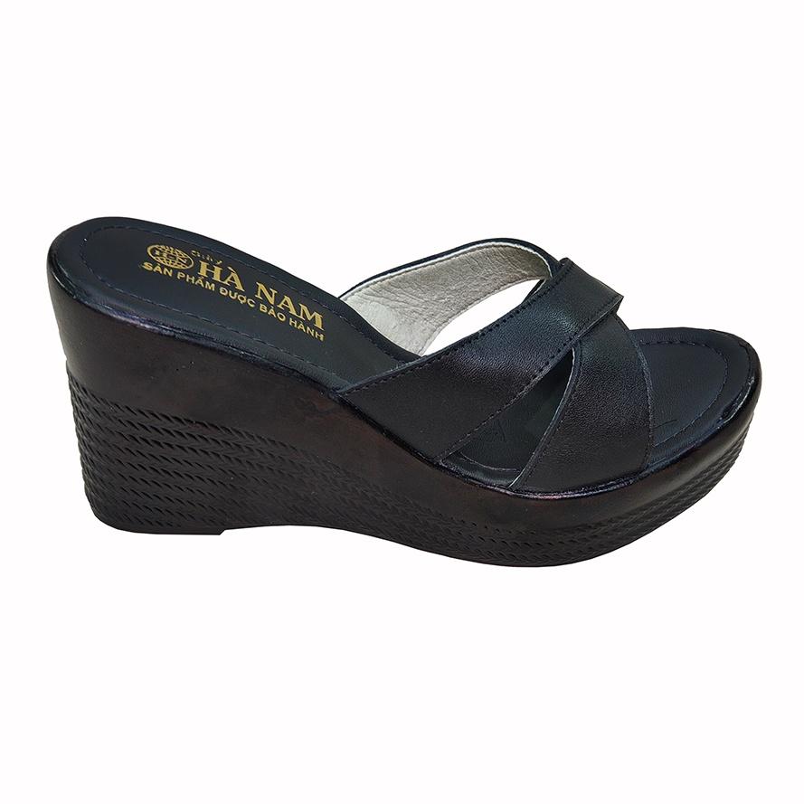 Dép Nữ Quai Chéo Đế Xuồng HÀ NAM Da Bò Thật Cao Cấp 9cm DNU2159 - Giày Dép Được Gia Công Tại Xưởng Shop - Hoàn Trả Tiền 100% Hoặc 1 Đổi 1 Nếu Shop