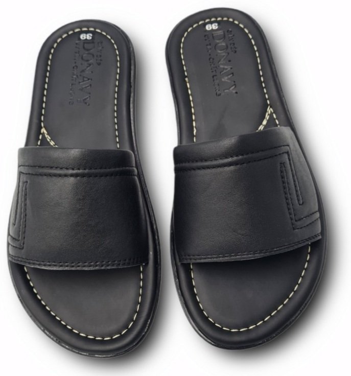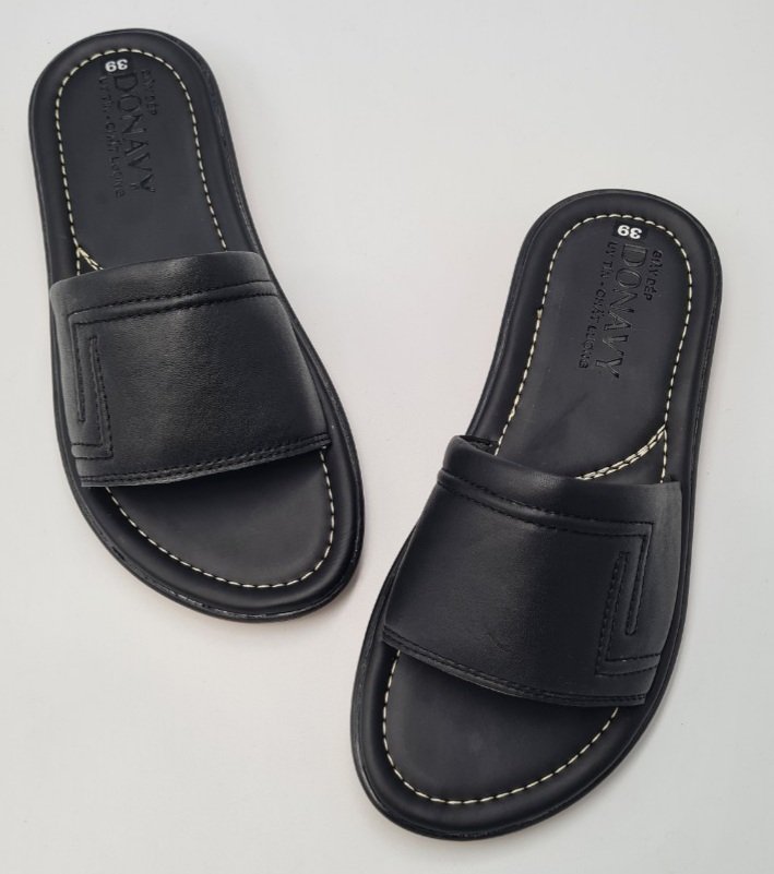 Dép Da Nam - Lịch Lãm & Thoải Mái Mỗi Ngày - Chất liệu cao cấp: Sử dụng da tổng hợp chất lượng, mềm mại, bền bỉ theo thời gian, mang lại cảm giác êm ái và thoáng khí cho bàn chân. - Thiết kế sang trọng: Tông màu đen lịch lãm, kết hợp với đường chỉ may tinh tế và logo kim loại nổi bật – tôn lên vẻ nam tính, trưởng thành. - Đế chống trượt: Đế EVA siêu nhẹ, độ đàn hồi tốt, kết hợp vân đế tăng độ ma sát – an toàn khi di chuyển trên nhiều bề mặt. - Form ôm chân: Thiết kế bản quai ngang rộng, ôm gọn bàn chân nhưng không gây bí bách, dễ xỏ vào – thích hợp cho người trung niên và người lớn tuổi. - Ứng dụng đa năng: Phù hợp sử dụng trong nhà, đi dạo phố, đến văn phòng hoặc các dịp gặp gỡ thân mật. Lựa chọn tuyệt vời cho quý ông yêu thích sự thoải mái, đơn giản nhưng vẫn giữ được nét tinh tế trong từng bước chân.