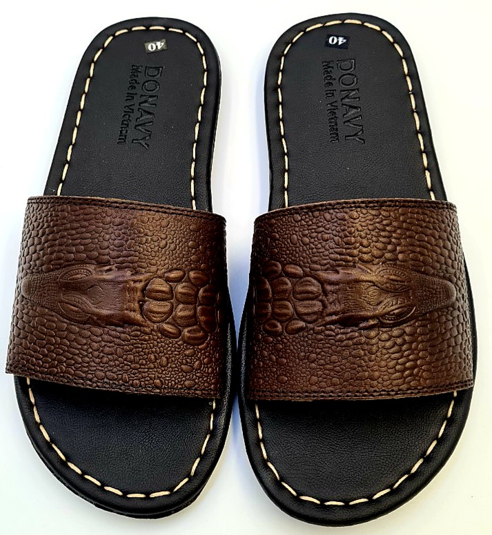 Mua tại TiktokDép Quai Ngang Nam Da Bò Thật 100%,DONAVY Kiểu Đầu Cá Sấu Đi Rất Nhẹ Và Êm DCSDN Chất liệu: Da bò thật 100% da bò tự nhiên Đế cao su tốt đi siêu êm, chống chơn, trượt. Da được may vào đế cẩn thận, đẹp bao đi nước Hàng đảm bảo giống hình
