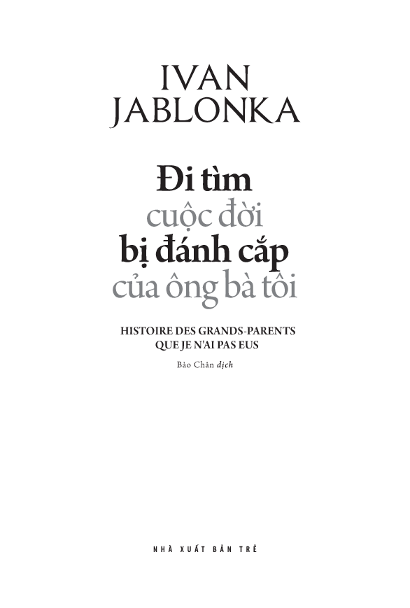 Cuốn tiểu thuyết lịch sử - hồi ký gia đình kể lại câu chuyện người cháu trai đi tìm tung tích của ông bà nội bị ám sát ở trại tập trung Auschwitch và mất tung tích. Họ vừa là người ruột thịt với anh vừa là người xa lạ vì đã qua đời rất sớm trước cả khi anh sinh ra. Họ bị truy bắt nên phải sống chui lủi ở khắp nơi đặt chân đến: Ba Lan, Pháp, Đức. Trên phông nền lịch sử ấy, câu chuyện của ông bà Jablonka là câu chuyện của những con người một thời đại, những con người nhỏ nhoi, vô danh, bị cuốn vào trong vòng xoáy khốc liệt của lịch sử thế kỷ, nhưng lịch sử được tạo nên bởi chính những số phận như thế.