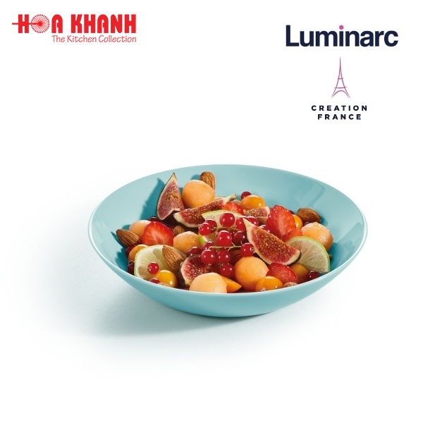 Đĩa sâu Thủy Tinh Luminarc Diwali Light Turquoise 20cm: - Quy cách: 3 đĩa - Kích thước: 20cm. - Chất liệu: Thuỷ tinh opal, cường lực, kháng vỡ. - Xuất xứ: Pháp. - Đặc tính