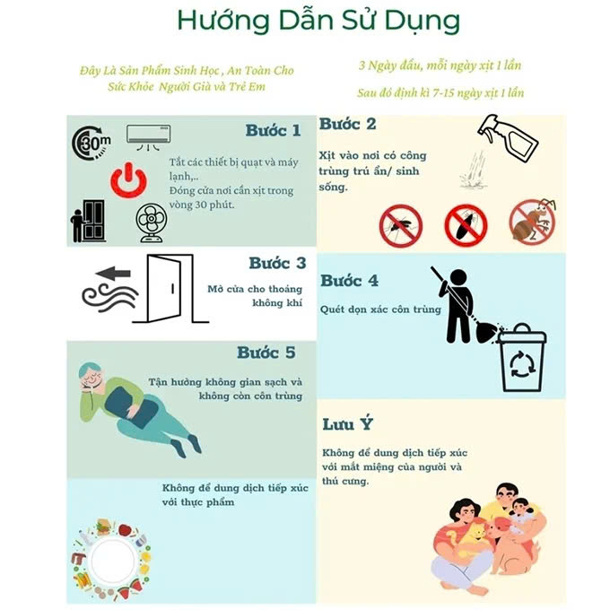 Trong 3 ngày đầu phun xịt Thảo mộc mỗi ngày 1 lần, sau đó giảm dần nên phun xịt theo định kỳ 7-15 ngày/lần,tùy mật độ côn trùng) để duy trì hiệu lực Thảo mộc tạo môi trường trong nhà luôn sạch sẽ, không có côn trùng trú ẩn.