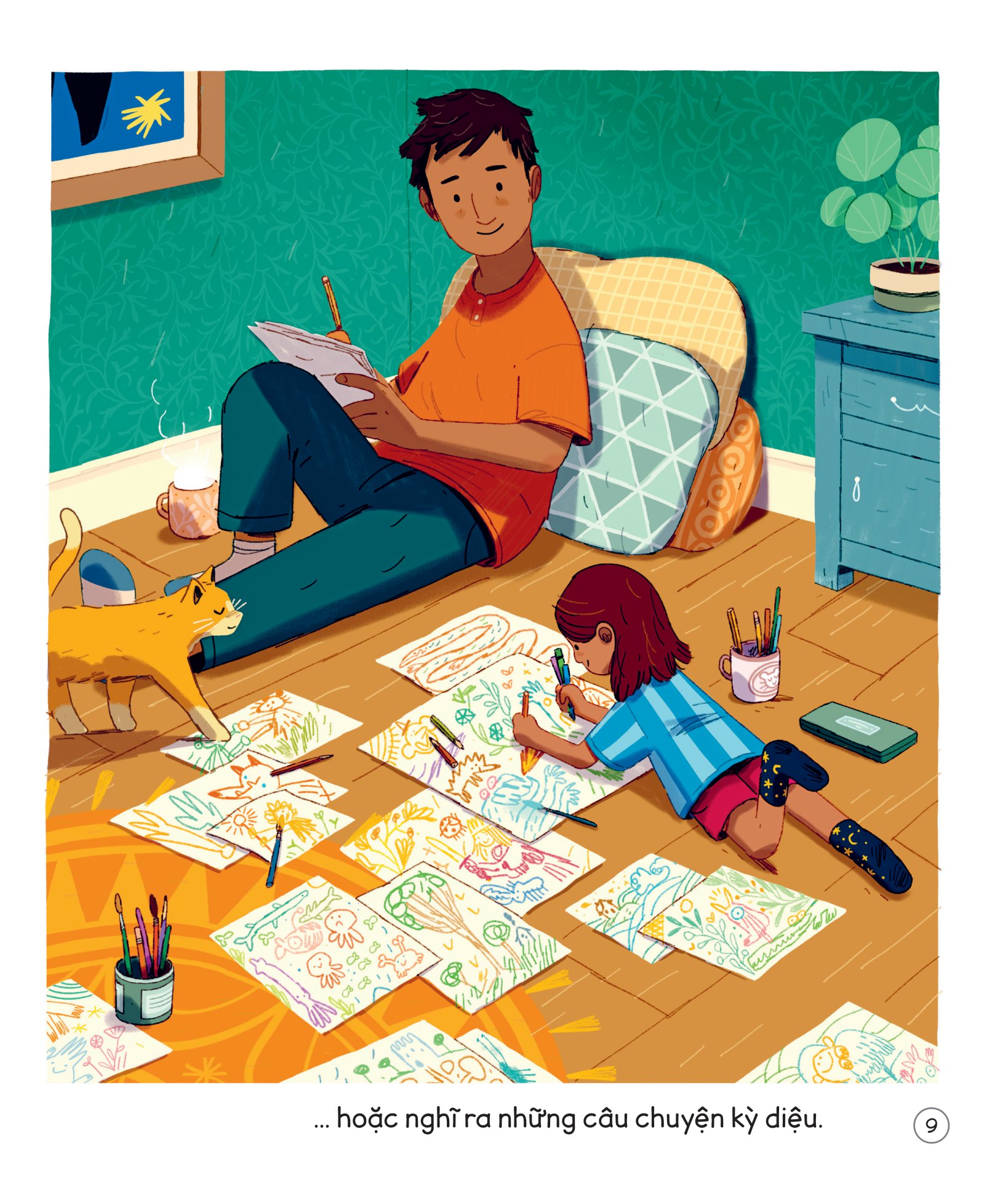Ngày ngày, bố đến trường đón tớ về và hai bố con tớ nấu những món thật ngon…