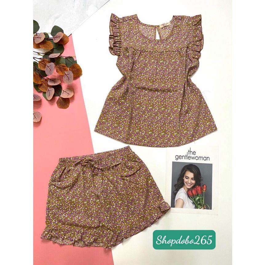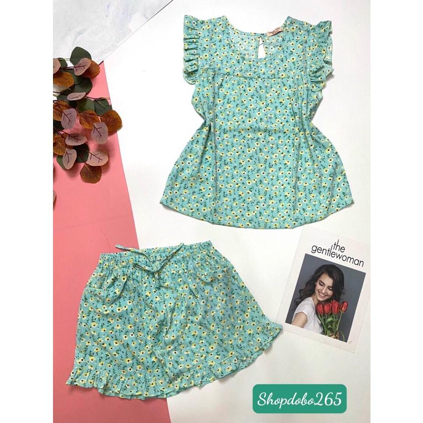 Đồ bộ nữ,đồ ngủ mặc nhà đùi vải lụa mango cao cấp họa tiêt hoa nhí siêu cưng size 45-57kg.