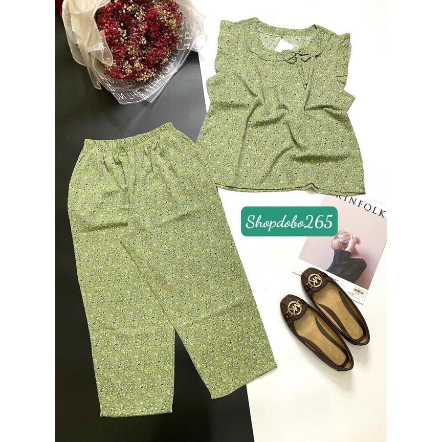 Mua tại TiktokĐồ bộ nữ,đồ ngủ mặc nhà lửng 9 tấc vải lụa mango cao cấp họa tiêt hoa nhí siêu cưng size đại 58-67kg.