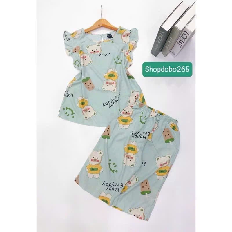 Đồ bộ nữ, đồ ngủ mặc nhà lửng tay cánh tiên vải lanh mềm ,mát BL 169 họa tiết dễ thương size 45-70kg. Chất: vải lanh (tole) 2 da mềm,mịn,mát, phù hợp với thời tiết