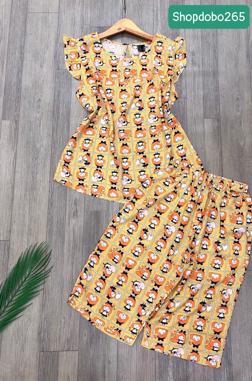 Đồ bộ nữ, đồ ngủ mặc nhà lửng tay cánh tiên vải lanh mềm ,mát BL 183 họa tiết dễ thương size 45-70kg. Chất: vải lanh (tole) 2 da mềm,mịn,mát, phù hợp với thời tiết
