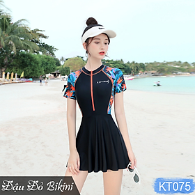 ✨Đồ bơi nữ một mảnh áo dài tay liền quần váy, khóa kéo trước phong cách trẻ trung, có sẵn đệm ngực, chất thun bơi lạnh dầy mịn mát | KT075