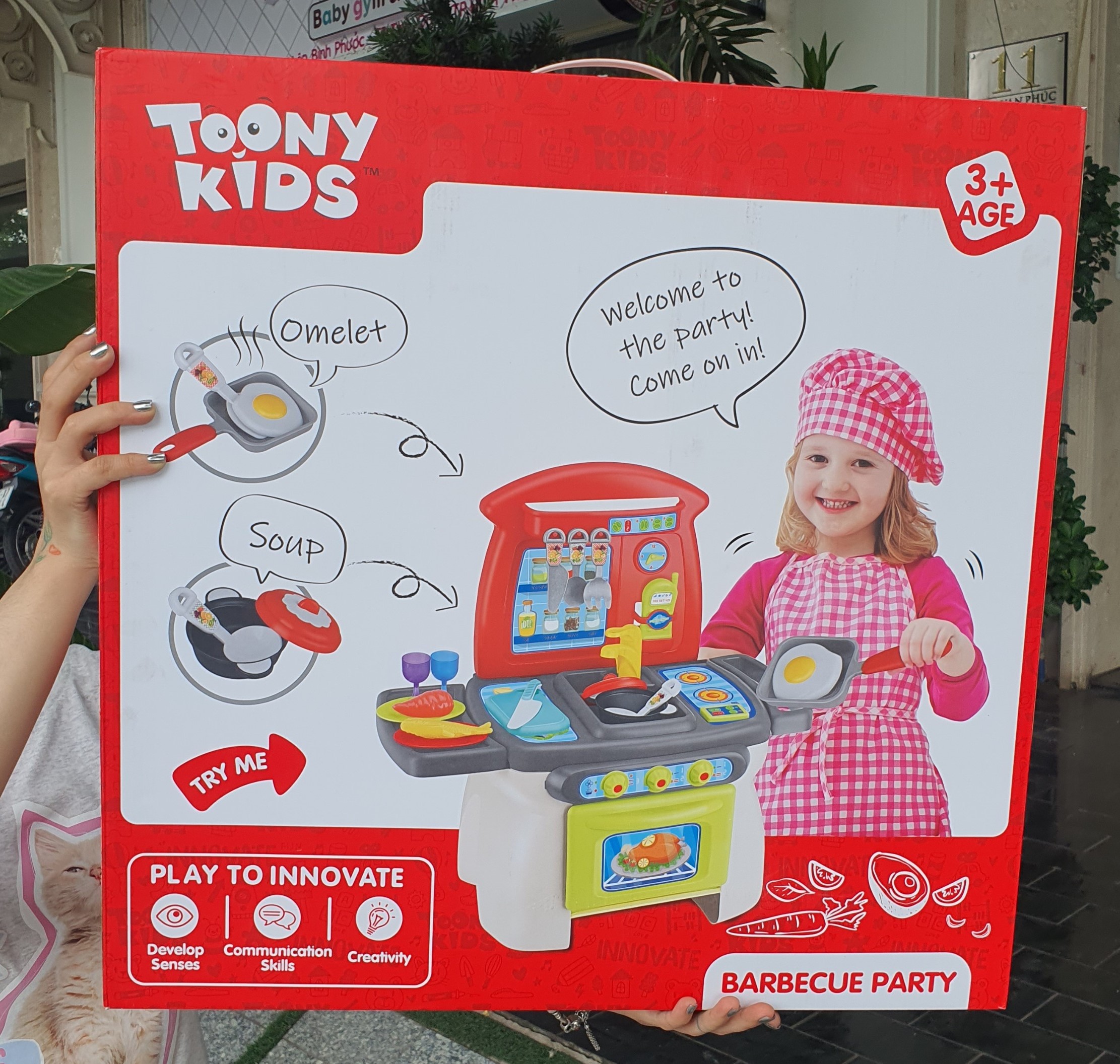 - Kích thước: 55 x 56 x 10 cm Toonykids không ngừng phát triển và cung cấp nhiều loại bộ đồ chơi nấu ăn đồ nướng với nhiều chủ đề khác nhau. Các sản phẩm này thường được thiết kế để phù hợp với cả bé trai và bé gái. Toonykids thật sự đã thể hiện mình là một thương hiệu đáng tin cậy và đáng yêu cho trẻ em. Những sản phẩm của họ không chỉ mang lại niềm vui cho trẻ mà còn hỗ trợ trong sự phát triển của họ. Với Toonykids, con bạn có thể tự tin bước vào thế giới nấu ăn và khám phá sự sáng tạo của mình. THÔNG TIN THƯƠNG HIỆU: