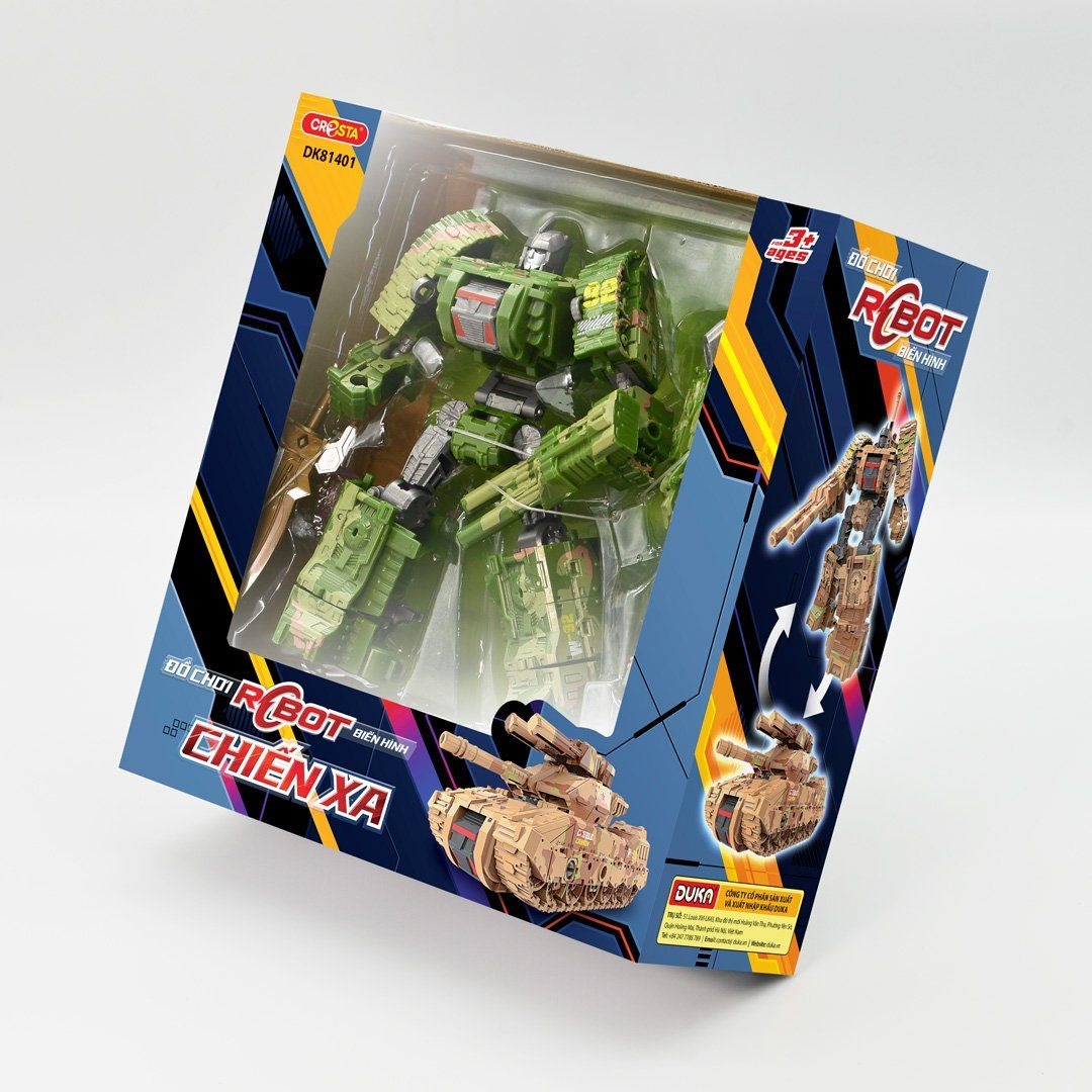 Đồ chơi Robot biến hình xe tăng được sản xuất bằng chất liệu nhựa ABS và hợp kim độ bên cao. Với thiết kế theo mô hình chiếc xe tăng - chiến xa và biến hình thành robot.