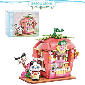 Đồ chơi lắp ráp Mô hình Cửa hàng Dâu tây tạo thành phẩm 14 8 15 (cm) với nhiều chi tiết nhỏ xinh xắn