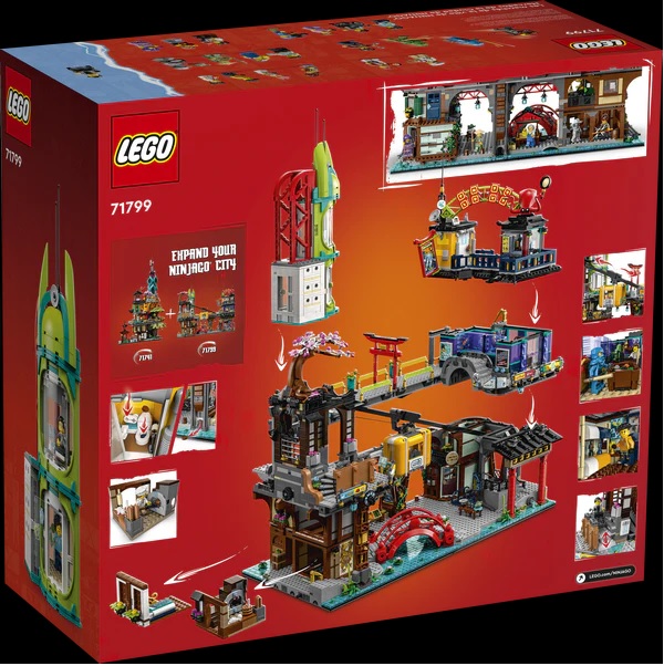 - Trải nghiệm tất cả màu sắc, sự phấn khích và sống động của Thành phố NINJAGO với mô hình 4 tầng chi tiết phức tạp này. Bộ tòa nhà lớn nhất từ trước đến nay của NINJAGO có cáp treo, tiệm bánh, thuyền, căn hộ, thang máy, khu ẩm thực trên tầng thượng và nhiều hơn thế nữa. Nó chứa 21 nhân vật nhỏ, bao gồm nhiều nhân vật được người hâm mộ yêu thích chưa từng thấy trước đây, để trẻ em thực hiện các pha hành động ninja thú vị.
