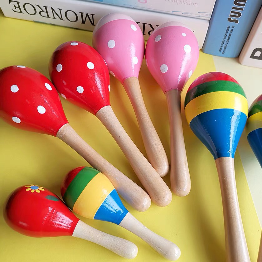 Đồ chơi âm nhạc trẻ em LỤC LẠC ( XÚC XẮC ) chuôi gỗ nhiều màu phát triển cảm quan cho bé từ 0 tuổi