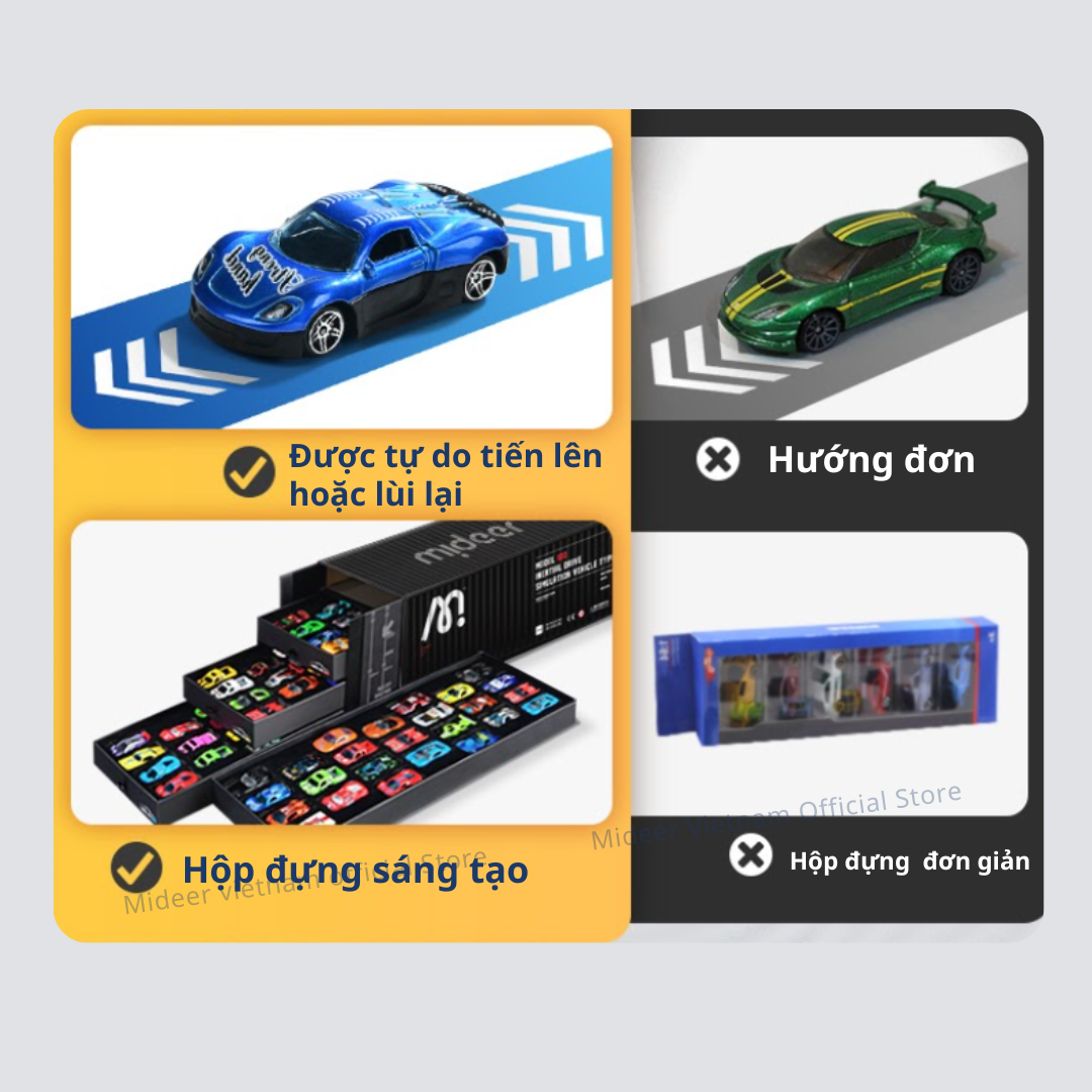 - Mô Hình Ô Tô Mideer: Mỗi xe đều khác nhau, Đầy đủ chi tiết,Tốc độ, Mịn màng không có cạnh sắc nét, Được tự do tiến lên hoặc lùi lại, hộp đựng sáng tạo