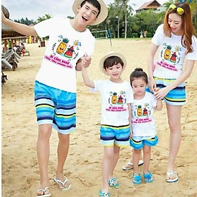 - ĐỒ ĐI BIỂN, DÃ NGOẠI Happy Holidays dành cho gia đình ( giá 1 bộ gồm 1 quần + 1 áo) CHẤT LIỆU : Quần vải dù nhanh khô, chống bám cát, không co