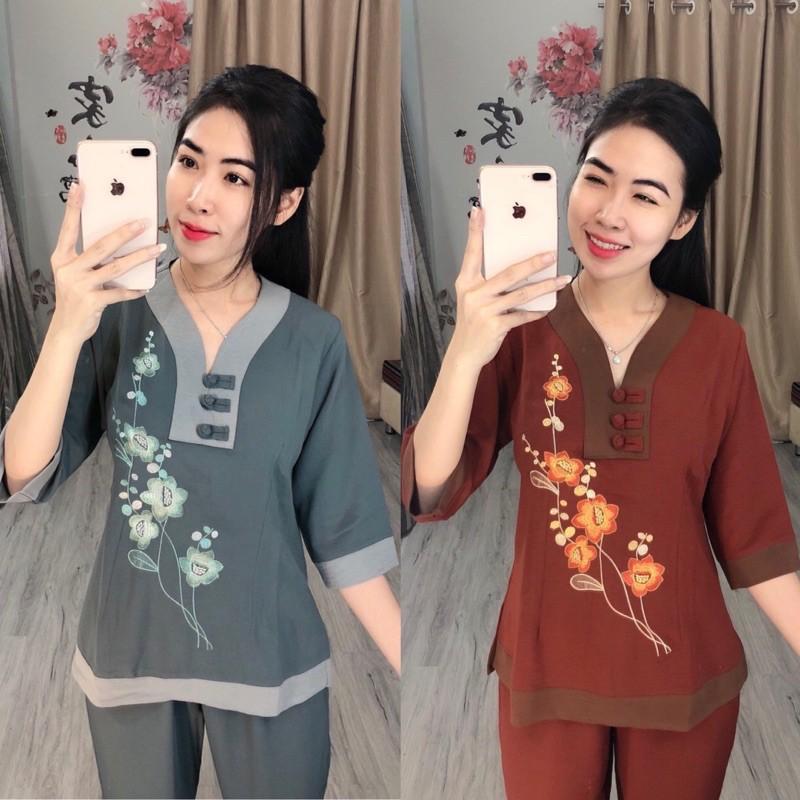 ✨Đồ Lam Đi Chùa # Cổ Y Thêu Hoa SaLa# Đồ Bộ # Quần Áo Nữ# Vải Mát