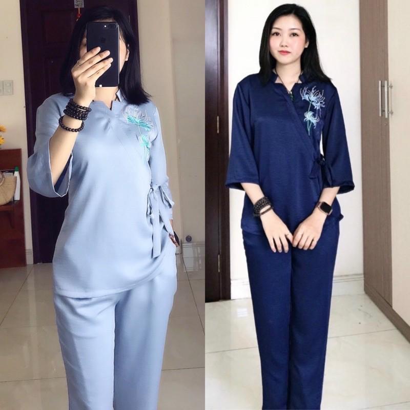 THÔNG TIN SẢN PHẨM Đồ Lam Nữ Đi Chùa SJ20 Trang Nhã Kín Đáo Dành Cho Phật Tử THÊU Công Ngọc Cao Cấp CHẤT LIỆU : VẢI SATIN LỤA (MẶC MÁT VẢI CO GIÃN NHẸ)