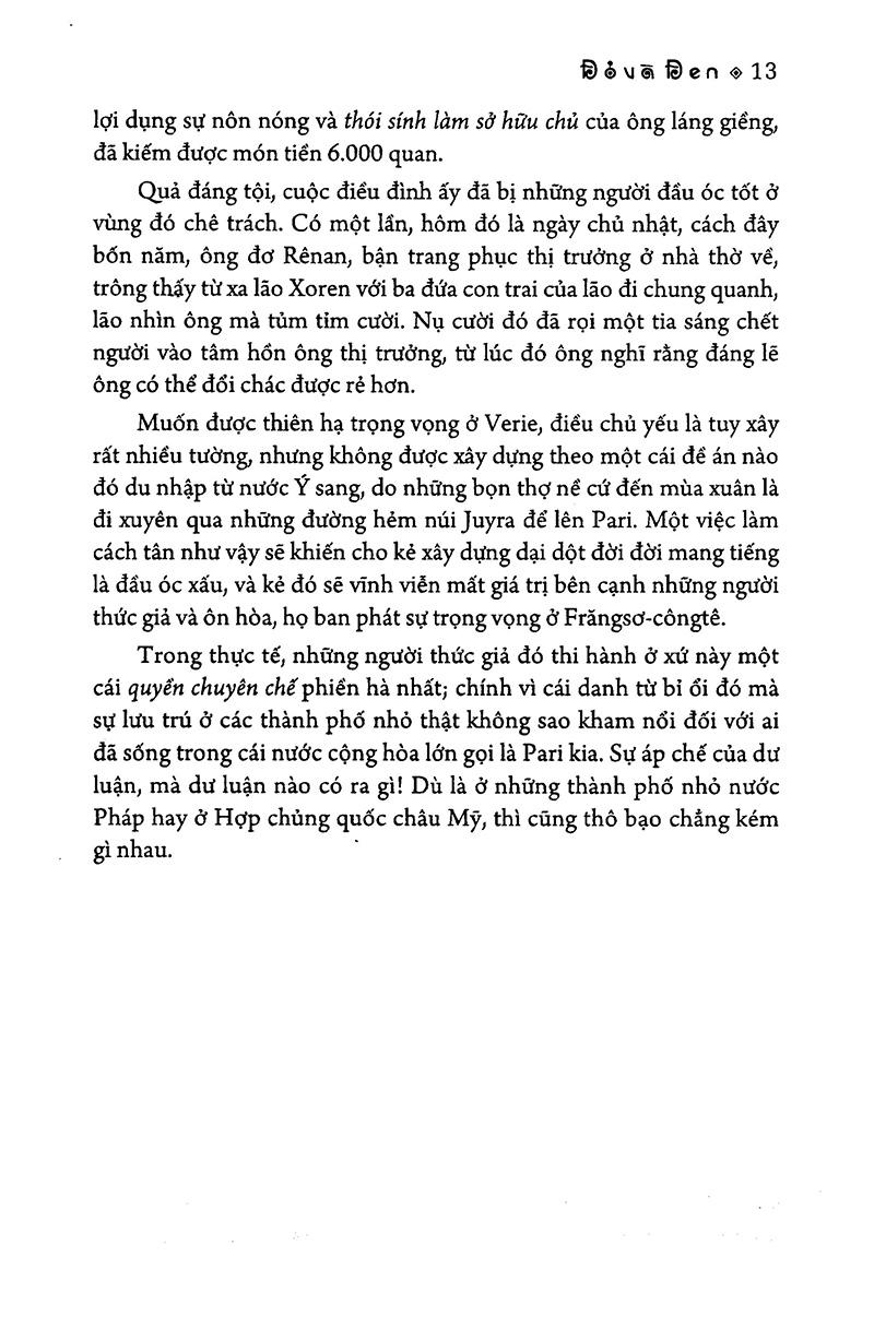 Stendhal dùng hình ảnh một anh hùng bị thất bại để châm biếm, chế nhạo đời sống xã hội Pháp thời đó, đặc biệt là thói đạo đức giả và việc xem trọng vật chất của tầng lớp quý tộc và báo trước những thay đổi trong xã hội Pháp sẽ xóa bỏ những tầng lớp này lẫn quyền lực của nó.
