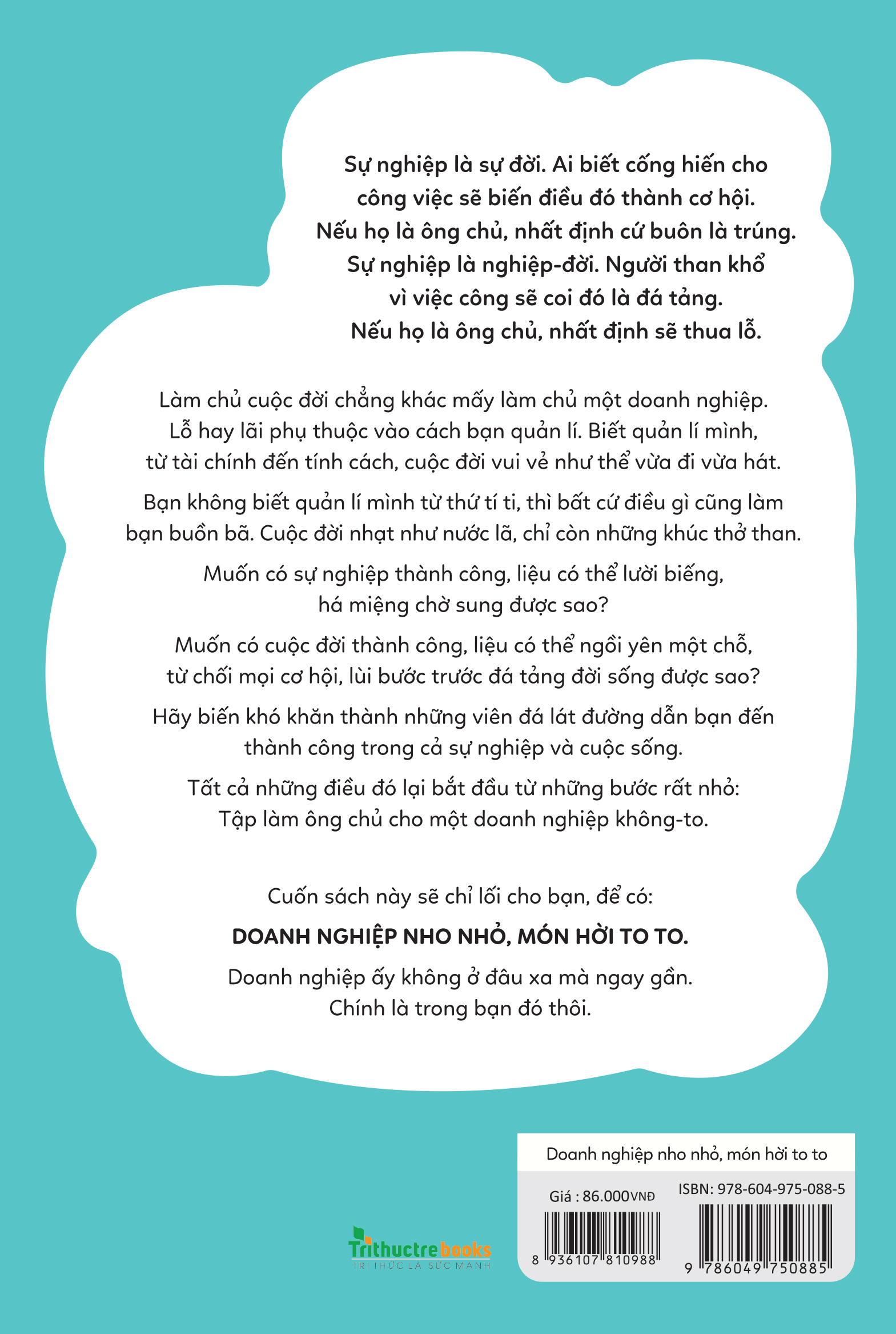 Cuốn sách này sẽ chỉ lối cho bạn để có: DOANH NGHIỆP NHO NHỎ, MÓN HỜI TO TO. Doanh nghiệp ấy không ở đâu xa mà ngay gần. Chính là trong bạn đó thôi."