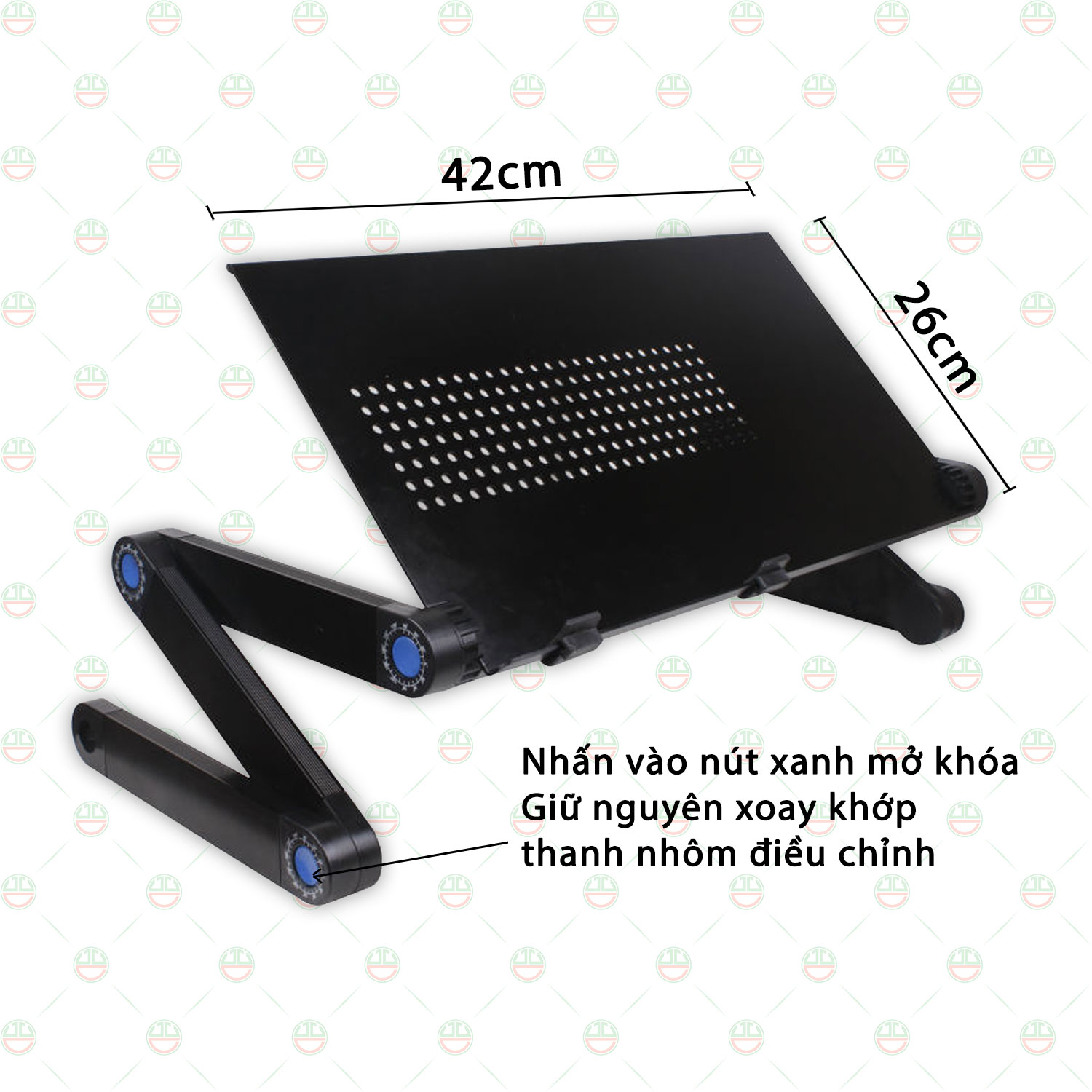 Mặt bàn laptop còn được thiết kế thông minh, có thể tăng giảm độ nghiên để thuận tiện cho người dụng khi ngồi làm việc dưới sàn nhà, làm việc trên giường hoặc ở ngoài trờ Khi