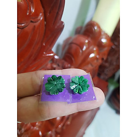 ✨Đôi Bông Tai Bông Mai Trái Tim Size trung mới đẹp 14mm x 4mm Đá Ngọc cẩm thạch tự nhiên xanh đậm điểm sơn thủy bóng đẹp Nữ mệnh Thủy bọc vàng đeo rất đẹp sang ạ