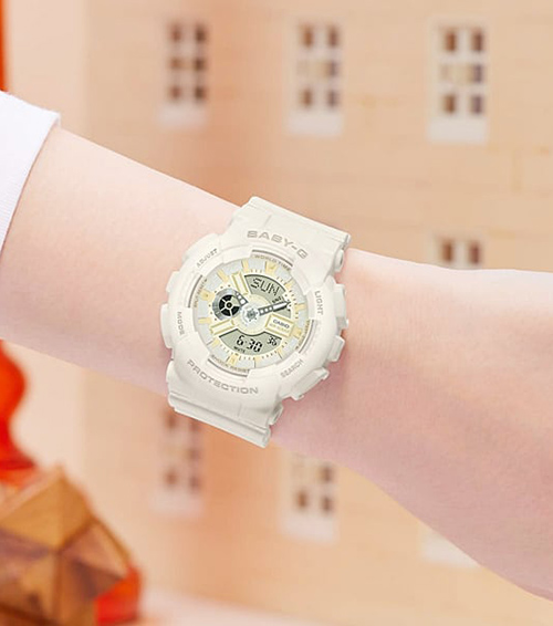 Tự thưởng cho mình mẫu đồng hồ BABY-G màu sô cô la lấy cảm hứng từ hương vị sô cô la bạn yêu thích. Chiếc đồng hồ đơn sắc màu trắng nhạt phủ lớp hoàn