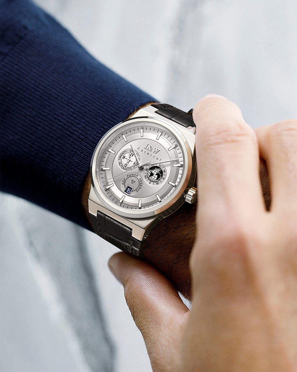 Chiếc đồng hồ bấm giờ tự động I&W Carnival MIYOTA IW782G-3 thực sự là một sản phẩm đáng chú ý, đặc biệt phù hợp cho các doanh nhân và các dịp trang trọng. Với các tính năng như : Lịch ngày (01-31) tại vị trí 6 giờ, Case back xuyên thấu nó không chỉ mang lại tính tiện ích mà còn làm tôn lên vẻ đẹp của chiếc đồng hồ.