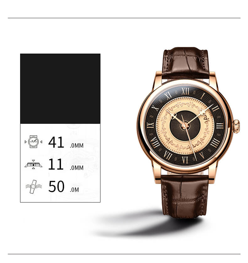 Nhãn hiệu LOBINNI Mã sản phẩm No.16053-9 Giới tính Nam Kiểu máy Automatic (Máy Cơ) Đường kính mặt 43 mm Độ dày 11,5 mm Chất liệu vỏ Thép không gỉ 316L Chất liệu dây Dây da cao cấp Chất liệu mặt kính Sapphire Crystal