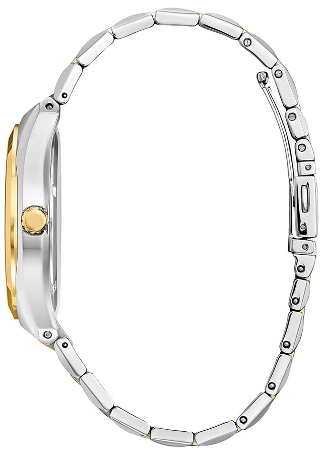 Đặc điểm kỹ thuật - - Vật liệu vỏ / gờ: Mạ ion - Chốt gập 3 chỉ với một lần bấm - Dây đeo bằng thép không gỉ - Mặt kính khoáng - Khả