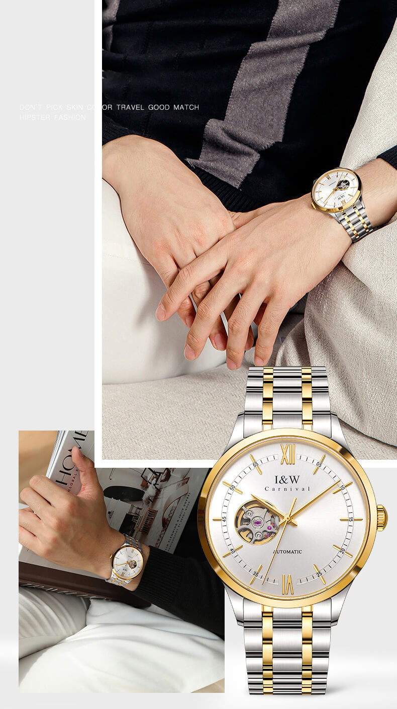 ✨Đồng Hồ Nam I&W Carnival 570G Chính Hãng Full Box Chống Nước Kính Chống Xước Dây Thép Cao Cấp BH24T (Máy Cơ Tự Động)