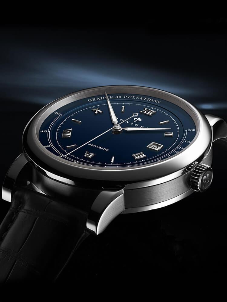 ✨Đồng hồ nam Poniger P305-2 Chính hãng ,Kính sapphire nguyên khối ,chống xước,chống nước 50m,mặt xanh navy vỏ trắng dây da nâu ( đen) xịn,vỏ máy thép không gỉ 316L,Đồng hồ cơ (Automatic) bảo hành 24 tháng, hàng mới 100%,thiết kế trẻ trung và sang trọng