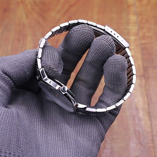 Thông số kỹ thuật - Chốt gập ba - Dây đeo bằng thép không gỉ - Mặt kính khoáng - Chống nước - Giờ hiện hành thông thường - Đồng hồ kim: 3 kim (giờ,