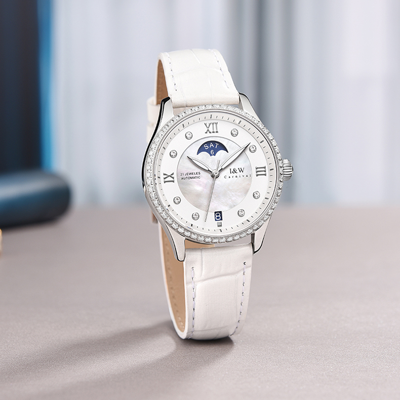 Đặc tính sản phẩm Đồng hồ nữ chính hãng I&W CARNIVAL IW582G-1 Kính sapphire ,chống xước ,Chống nước 30m ,Bảo hành 24 tháng,Máy cơ (Automatic),dây da cao cấp, thiết kế đơn giản dễ đeo