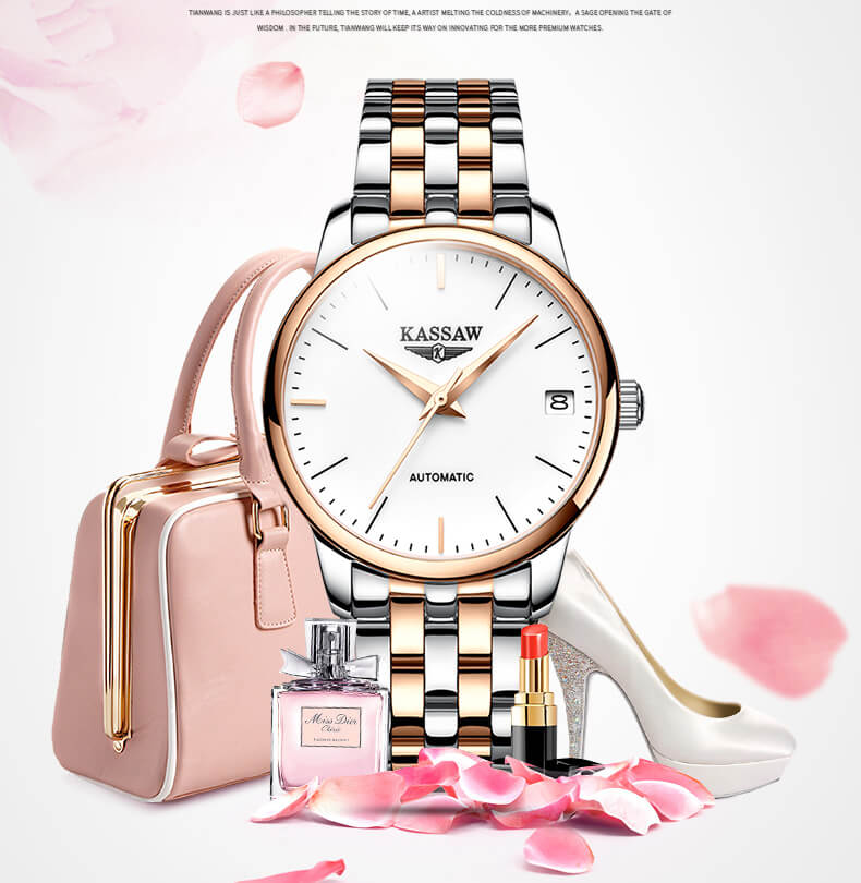 Đồng hồ nữ chính hãng kassaw Thụy Sỹ Thiết kế hiện đại,sang trọng dành cho phái nữ Thời gian trữ cót lâu lên đến 40h Chống nước 5ATM, Kính sapphire Toàn bộ máy được làm