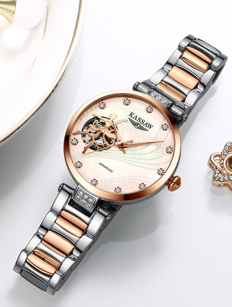 Đồng hồ nữ chính hãng kassaw Thụy Sỹ Thiết kế hiện đại,sang trọng dành cho phái nữ Thời gian trữ cót lâu lên đến 40h Chống nước 5ATM, Kính sapphire Toàn bộ máy được làm