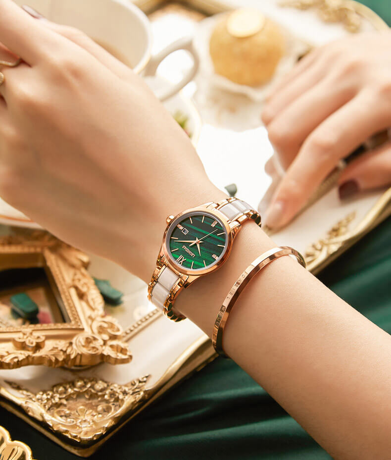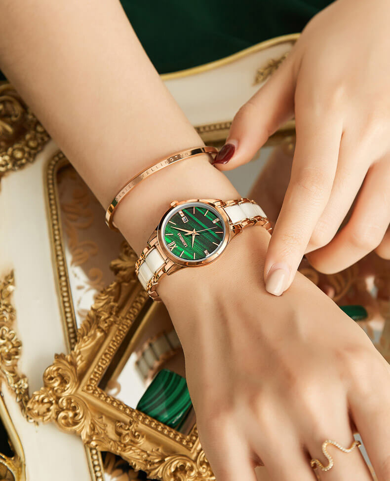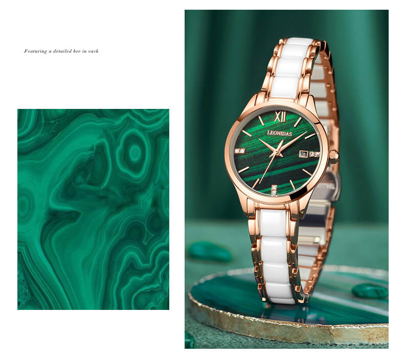 Mặt đồng hồ màu xanh lá lạ mắt nhưng thanh lịch tạo nên điểm nhấn trên tay, phù hợp với dân văn phòng cũng như học sinh, sinh viên.