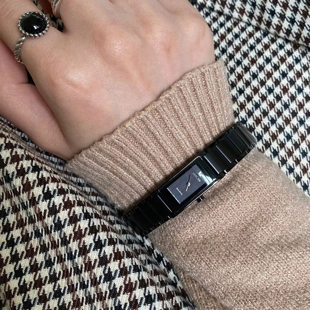 ✨Đồng Hồ Nữ Citizen Đính Kim Cương Dây Thép Không Gỉ EG7055-51E - Mặt Đen